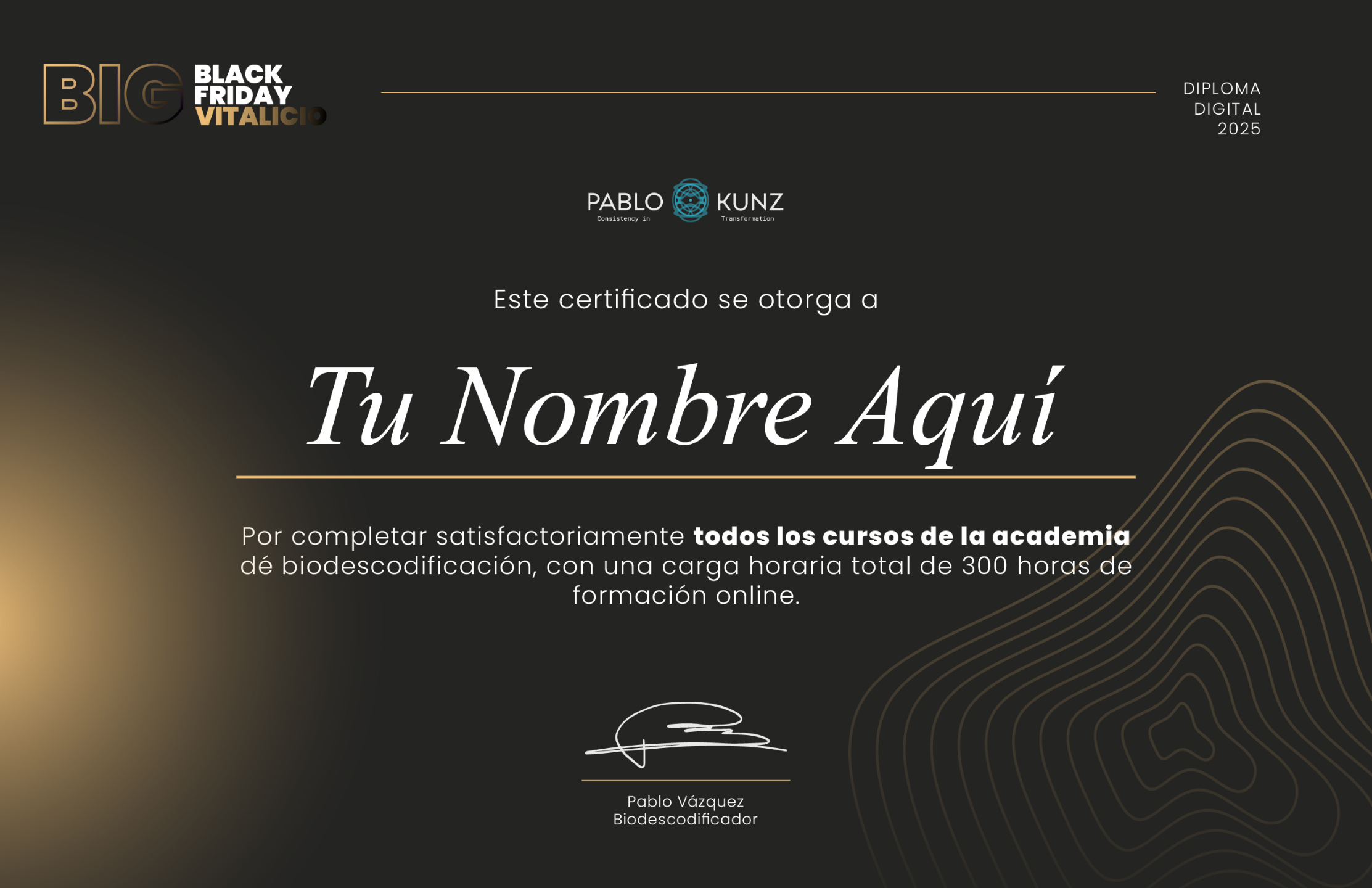 Por eso, al completar tu acceso vitalicio recibirás el Certificado Profesional en Biodescodificación, un símbolo de maestría y transformación, que avala tu recorrido y te posiciona como un profesional en este camino.