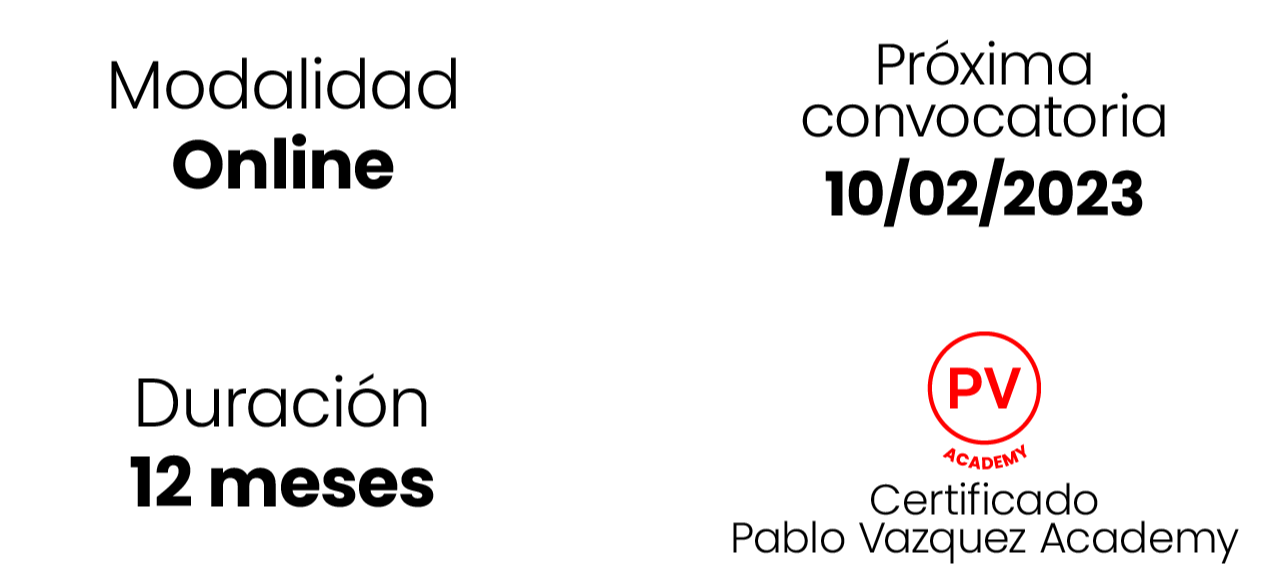 Formación avalada por Pablo Vazquez Academy